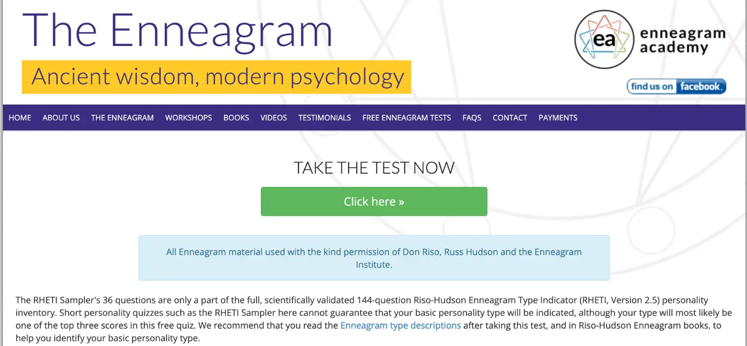 Enneagram Academy provides both free and paid Enneagram tests, along with a variety of resources for further exploration. Its user-friendly interface makes it easy to navigate for those new to the Enneagram.