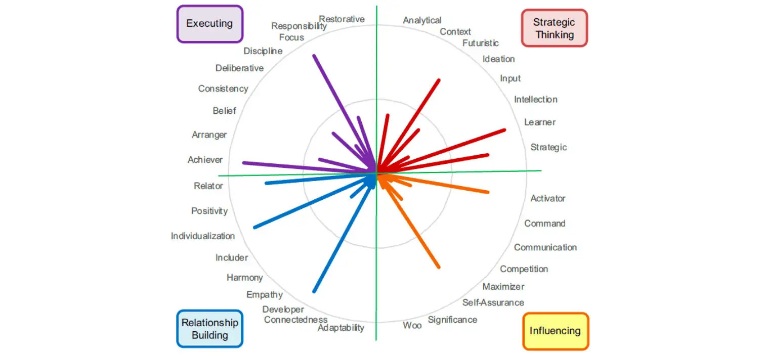 Strength-based personality assessments are tools that help individuals discover and understand their unique talents and strengths. It identifies and categorizes these strengths into lists (e.g. CliftonStrengths shows you 34 themes), offering insights to guide personal development and maximize one's potential in various areas of life.